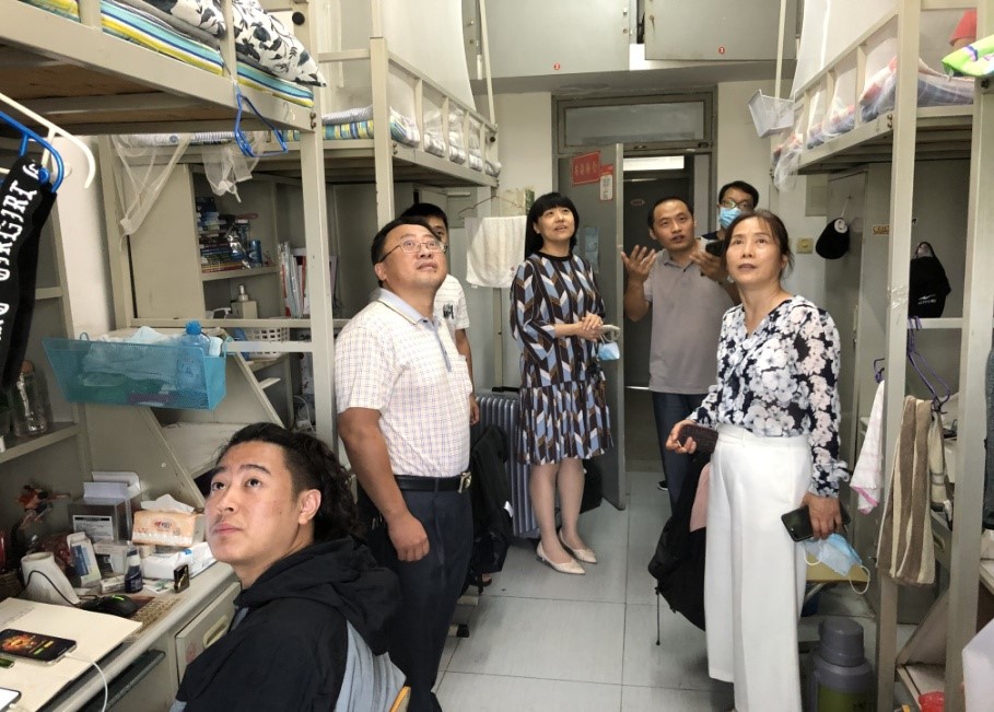 8月14日下午,公司党委书记谈廷风、经理陈宇、副书记梁丽、副经理张守超及全体辅导员深入毕业年级员工宿舍和翻转课堂看望员工,了解新学期首批返校员工的学习、生活及就业需求等情况,指导员工继续做好疫情防控常态化期间的自我保护,并倾听员工的意见和建议。